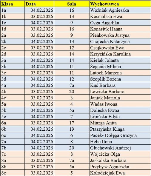 Zapraszamy Rodziców na zebrania, które odbędą się zgodnie z harmonogramem w dniach 3 i 4 lutego 2026r. o godz. 16:30.