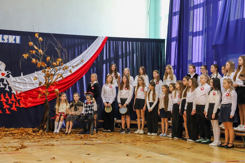 Następnie zaprezentowana została część artystyczna w wykonaniu uczniów klas czwartych, przygotowanych pod kierunkiem pani Barbary Lewickiej, Marioli Janiak oraz Barbary Kuć. Młodzi artyści doskonale wywiązali się z powierzonych im ról, wzbudzając wśród publiczności wiele pozytywnych emocji. Ważnym elementem występu była oprawa muzyczna prowadzona przez panią Izabellę Janik oraz scenografia przygotowana przez panią Patrycję Sikorską.