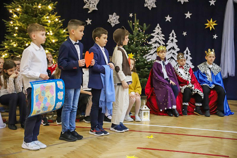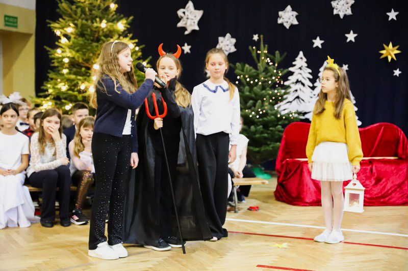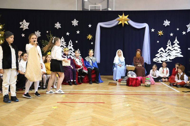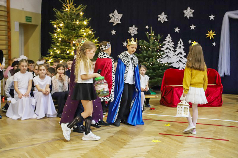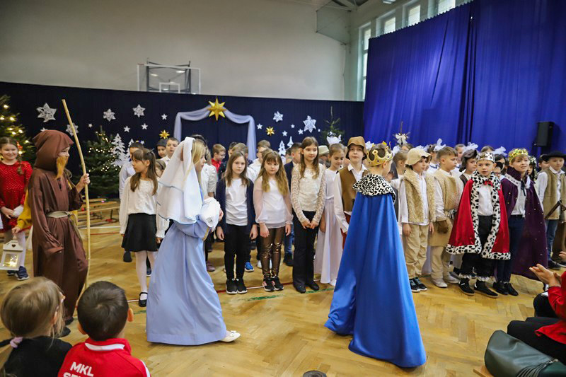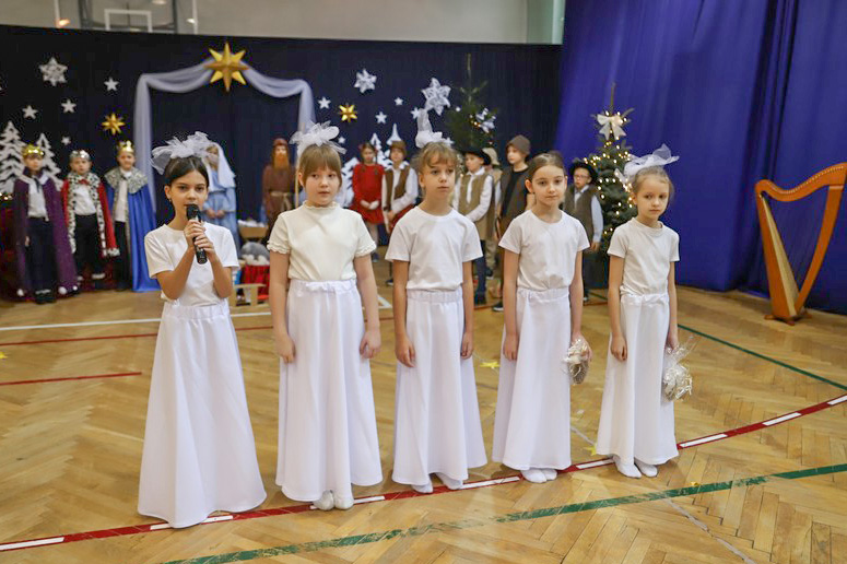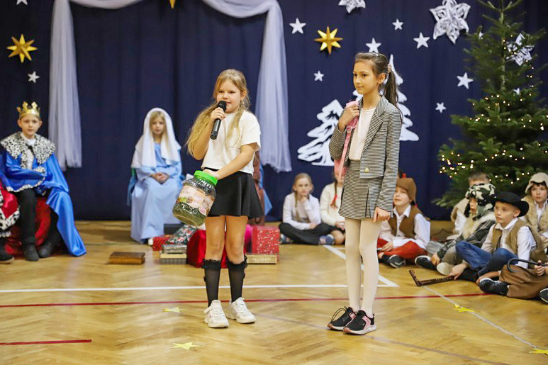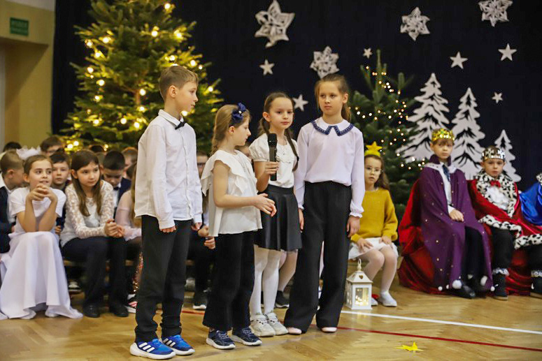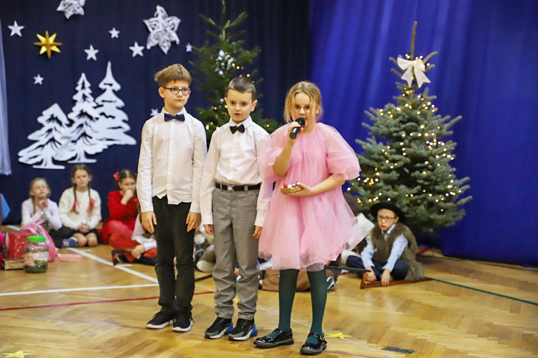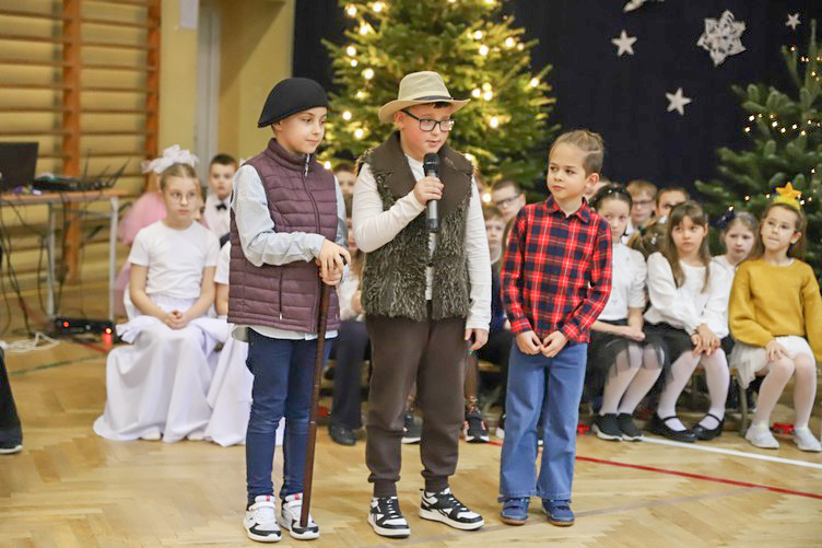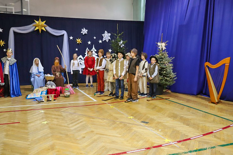 19 grudnia na naszej szkolnej scenie odbył się wyjątkowy występ dzieci z klasy 3b, 3c i 3d, które zaprezentowały przedstawienie bożonarodzeniowe. Uczniowie pokazali, jak Gwiazdka Betlejemska rozświetla się dzięki życzeniom i uczynkom grzecznych dzieci. Widzowie mogli zobaczyć, jak małe serca pełne dobroci i życzliwości sprawiają, że Gwiazda staje się coraz jaśniejsza, oświetlając drogę do Betlejem...>> film