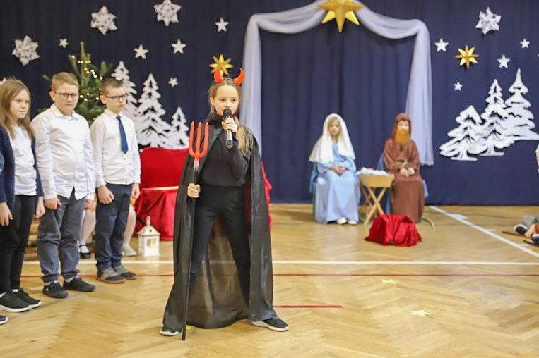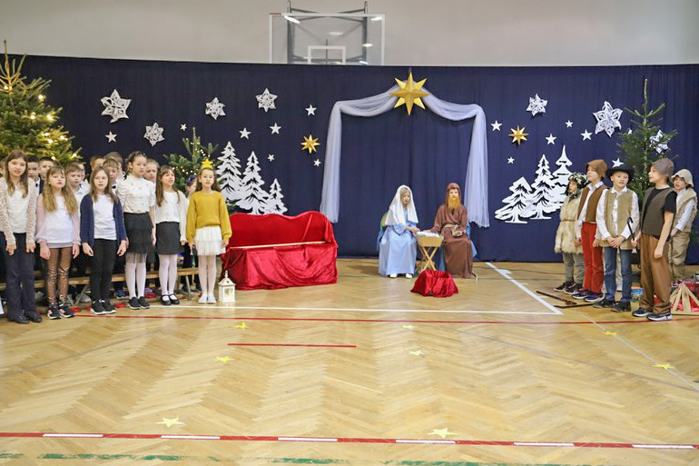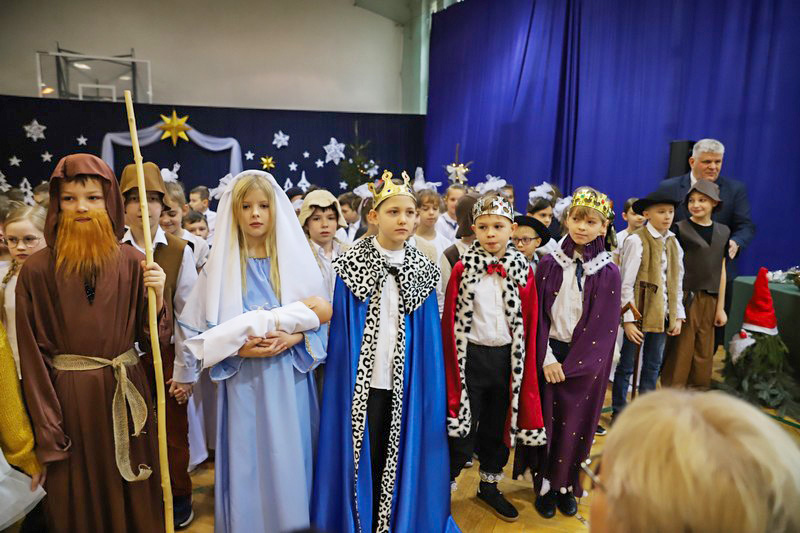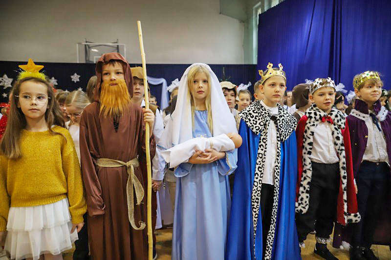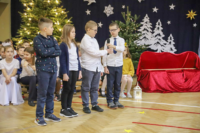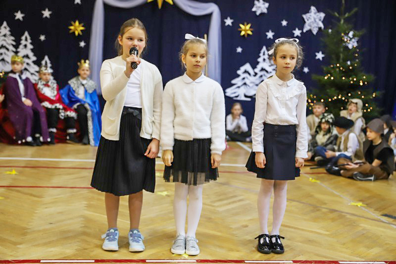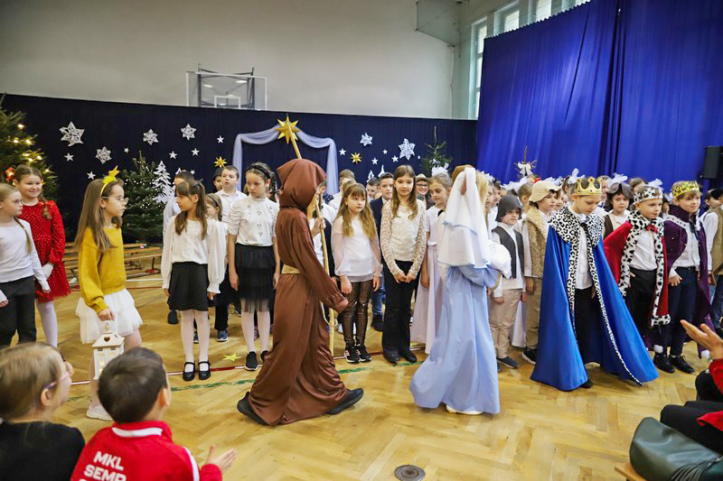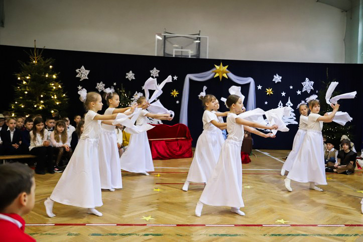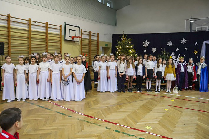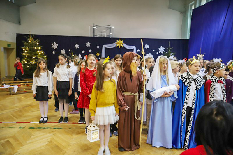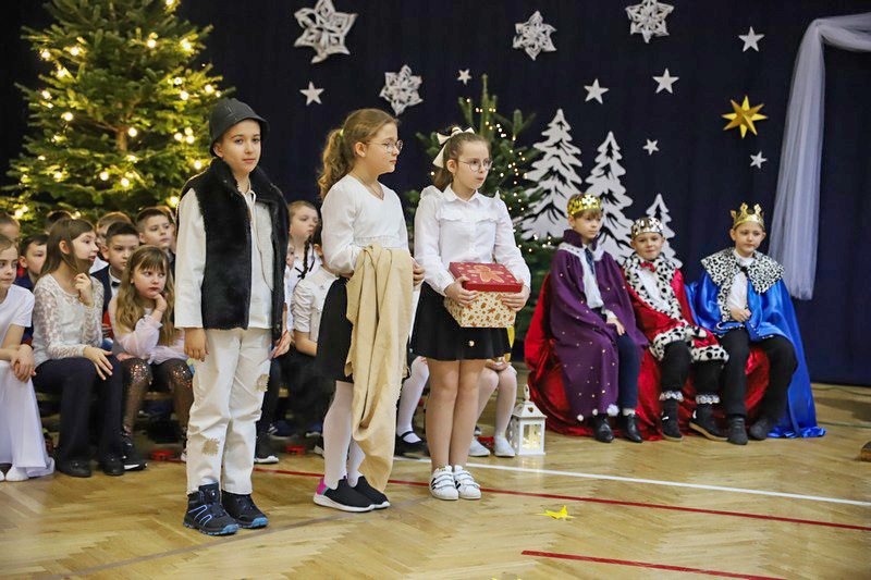 19 grudnia na naszej szkolnej scenie odbył się wyjątkowy występ dzieci z klasy 3b, 3c i 3d, które zaprezentowały przedstawienie bożonarodzeniowe. Uczniowie pokazali, jak Gwiazdka Betlejemska rozświetla się dzięki życzeniom i uczynkom grzecznych dzieci. Widzowie mogli zobaczyć, jak małe serca pełne dobroci i życzliwości sprawiają, że Gwiazda staje się coraz jaśniejsza, oświetlając drogę do Betlejem...>> film