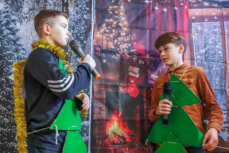 Przedstawienie świąteczne klasy 6b odbyło się w miłej, bożonarodzeniowej atmosferze. Uczniowie zaprezentowali występ w języku angielskim, który obejmował świąteczne piosenki. Zimowa scenografia oraz udekorowana choinka podkreśliły świąteczny nastrój, a całość pokazała zaangażowanie i dobrą współpracę uczniów…>>film