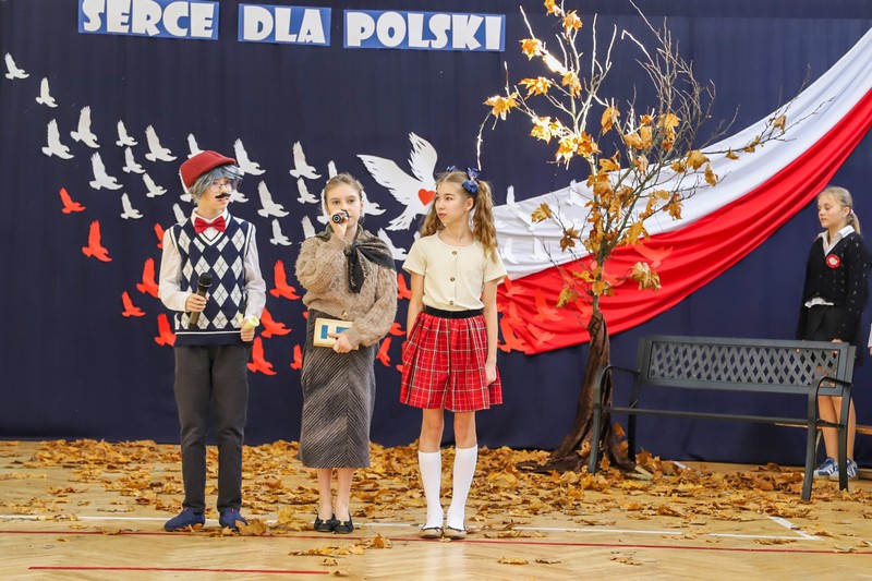 Następnie zaprezentowana została część artystyczna w wykonaniu uczniów klas czwartych, przygotowanych pod kierunkiem pani Barbary Lewickiej, Marioli Janiak oraz Barbary Kuć. Młodzi artyści doskonale wywiązali się z powierzonych im ról, wzbudzając wśród publiczności wiele pozytywnych emocji. Ważnym elementem występu była oprawa muzyczna prowadzona przez panią Izabellę Janik oraz scenografia przygotowana przez panią Patrycję Sikorską.