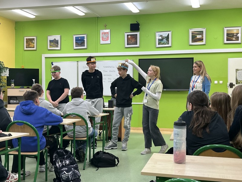 Głównym celem spotkań był kontakt z żywym językiem obcym oraz nabywanie śmiałości w posługiwaniu się nim. Zajęcia pełne były pozytywnych emocji, zabaw i rozmów. Mnóstwo śmiechu dostarczyły łamańce językowe, zarówno angielskie jak i polskie. Nasi goście opowiedzieli o amerykańskim Święcie Dziękczynienia, które obchodzili we czwartek 27.11. Przyjęli też zaproszenie na szkolną dyskotekę, podczas której mieli okazję uczyć się ulubionego tańca naszych uczniów- belgijki. Te spotkania na długo zapadną w pamięć.
