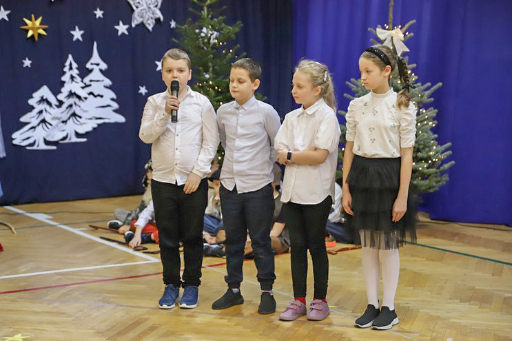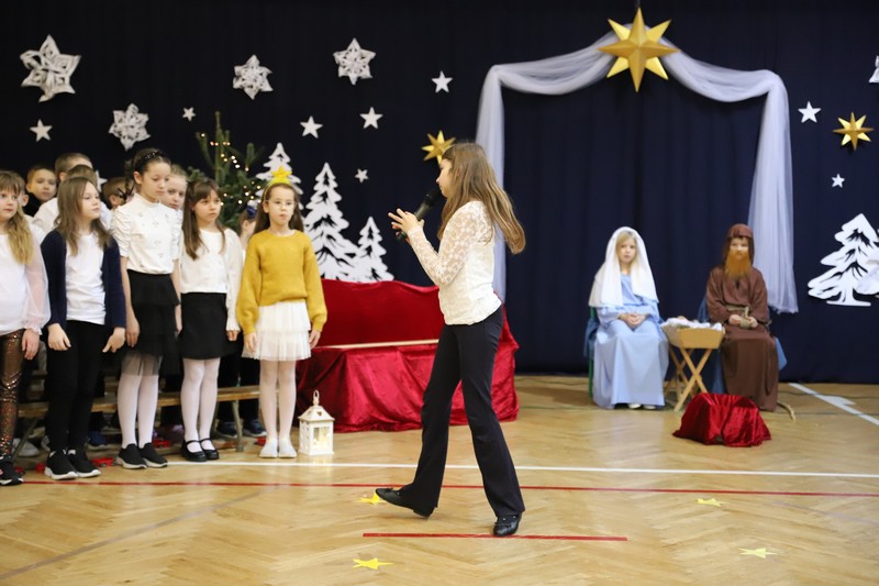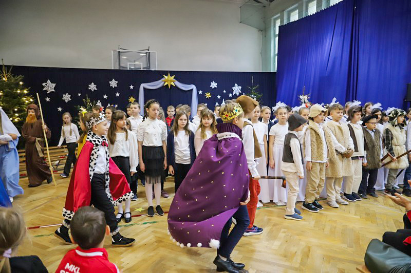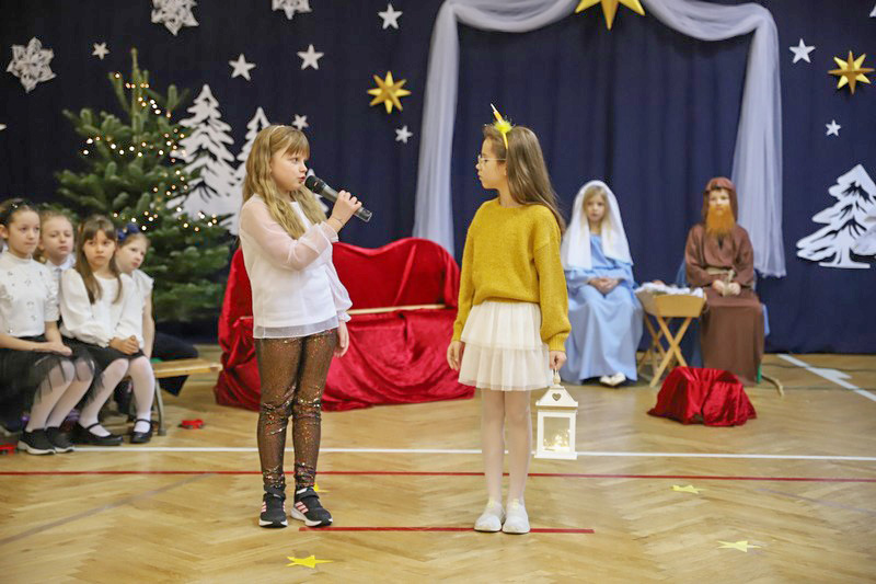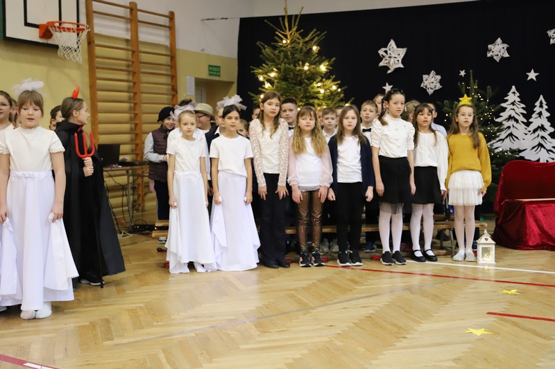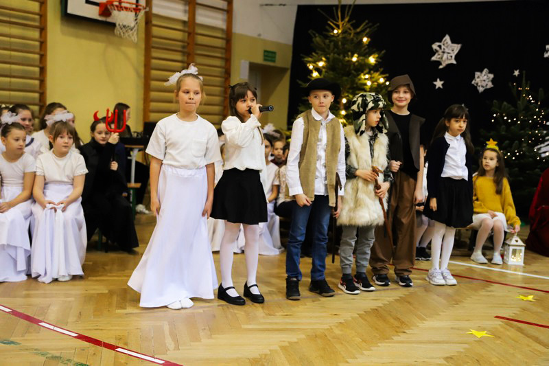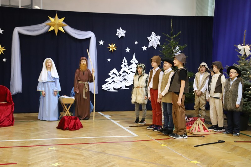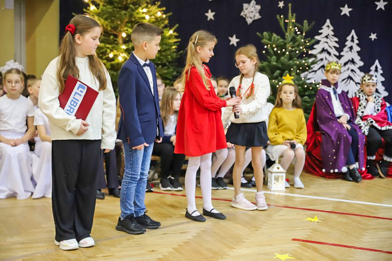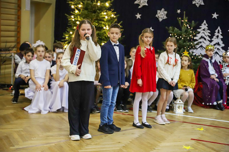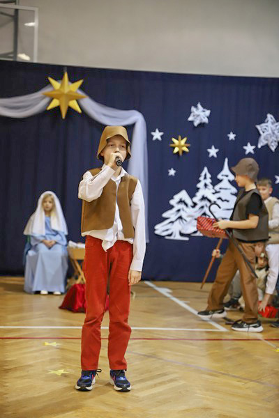 19 grudnia na naszej szkolnej scenie odbył się wyjątkowy występ dzieci z klasy 3b, 3c i 3d, które zaprezentowały przedstawienie bożonarodzeniowe. Uczniowie pokazali, jak Gwiazdka Betlejemska rozświetla się dzięki życzeniom i uczynkom grzecznych dzieci. Widzowie mogli zobaczyć, jak małe serca pełne dobroci i życzliwości sprawiają, że Gwiazda staje się coraz jaśniejsza, oświetlając drogę do Betlejem...>> film