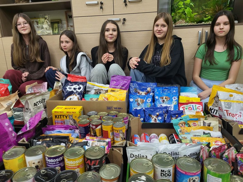 W grudniu 2025r. odbyła się w naszej szkole zbiórka karmy dla psów i kotów przebywających w Pogotowiu dla Zwierząt w Kuflewie koło Mrozów. Obecnie w pogotowiu tym przebywa ponad dwieście psów i 47 bezdomnych kotów.