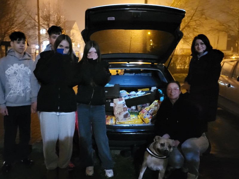 Dzięki zaangażowaniu dzieci, wychowawców oraz rodziców podczas pełnionych dyżurów zebraliśmy 420 kg karmy, pięć misek oraz dwa legowiska, które przekazaliśmy pracownikom pogotowia.