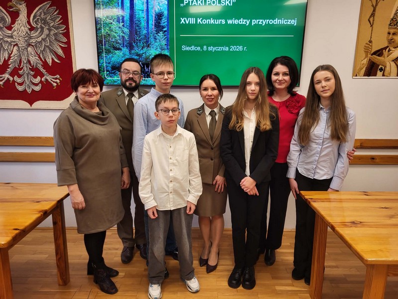 8 grudnia 2026r. w siedzibie Nadleśnictwa Siedlce przy ulicy Kazimierzowskiej odbyło się uroczyste podsumowanie Rejonowego Konkursu Wiedzy Przyrodniczej „Ptaki Polski”.