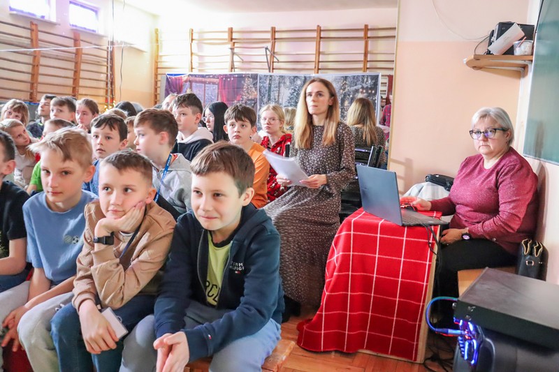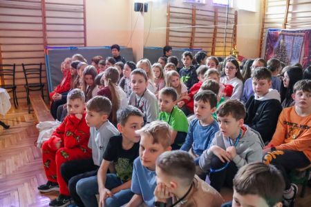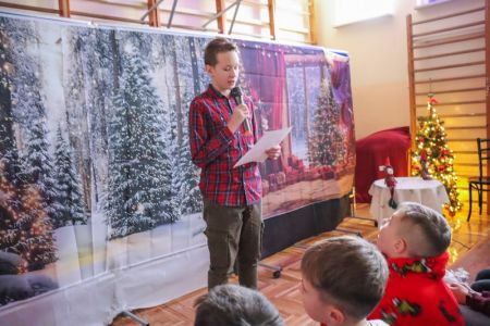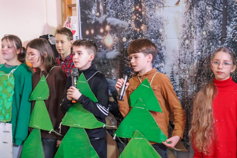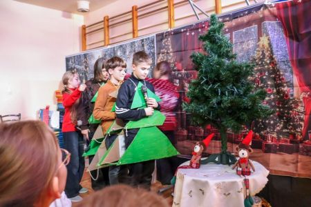 Przedstawienie świąteczne klasy 6b odbyło się w miłej, bożonarodzeniowej atmosferze. Uczniowie zaprezentowali występ w języku angielskim, który obejmował świąteczne piosenki. Zimowa scenografia oraz udekorowana choinka podkreśliły świąteczny nastrój, a całość pokazała zaangażowanie i dobrą współpracę uczniów…>>film