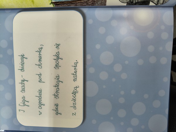 Klasa 1b wzięła udział w Ogólnopolskim Konkursie „Niespodzianka dla Smoka Zefirka”, zorganizowanym przez Farmę Iluzji. Na konkurs przygotowaliśmy ilustrowaną książkę, w której znalazł się wiersz napisany przez uczniów naszej klasy "Zefirek - smok przygód" oraz rysunki przedstawiające Farmę Iluzji. Nasza praca została doceniona — zajęliśmy 2 miejsce! W nagrodę otrzymaliśmy 50% rabatu na wycieczkę grupową.