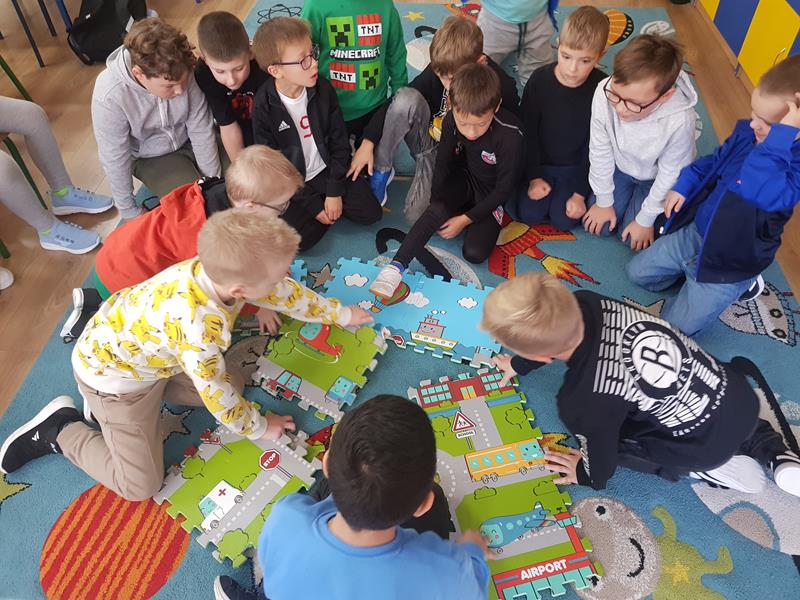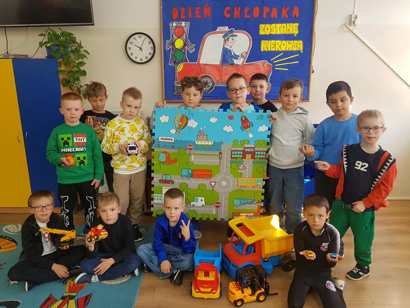 Dzień Chłopaka 2025 w naszej świetlicy obchodziliśmy pod hasłem ,,Zostanę kierowcą". Podczas zajęć wyjaśnialiśmy, kto to jest kierowca i jak wygląda jego praca. Poznaliśmy kategorie prawa jazdy uprawniające do prowadzenia różnych pojazdów. Oglądaliśmy dawne i nowe marki samochodów, ich symbole, oznaczenia i ciekawostki z nimi związane. Odbyły się wspólne zabawy: wyścigi resoraków na torze przeszkód, układanie ulicy z megapuzli. Przypomnieliśmy zasady zachowania bezpieczeństwa w ruchu drogowym oraz znaki drogowe obowiązujące kierowców i pieszych.